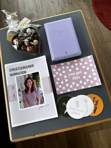 Bij aankomst op de kamer lagen er leuke spullen klaar en wat lekkers. Een magazine hoe je deze workation tot een succes kan maken en het dagboek van Structuurjunkie.